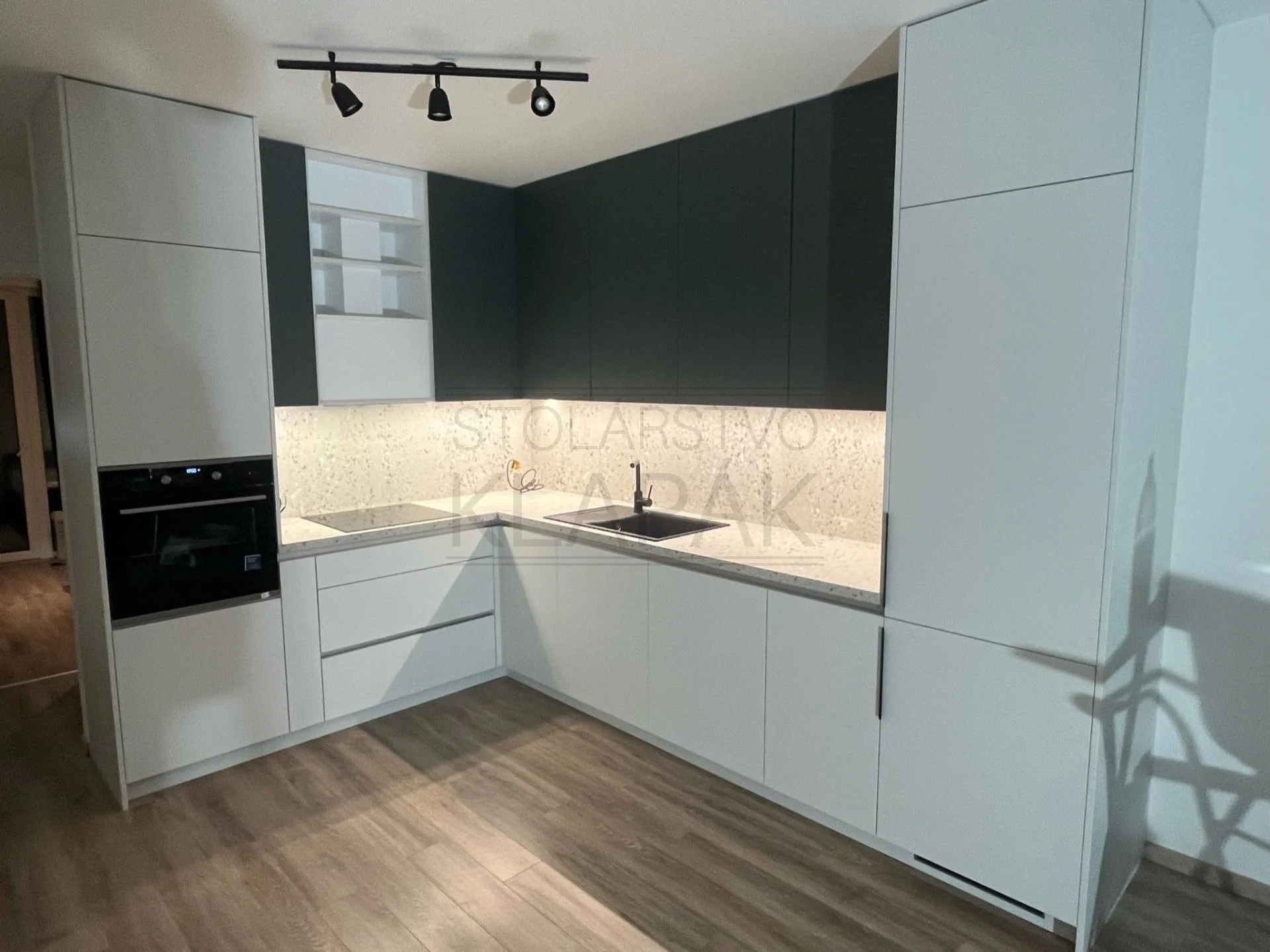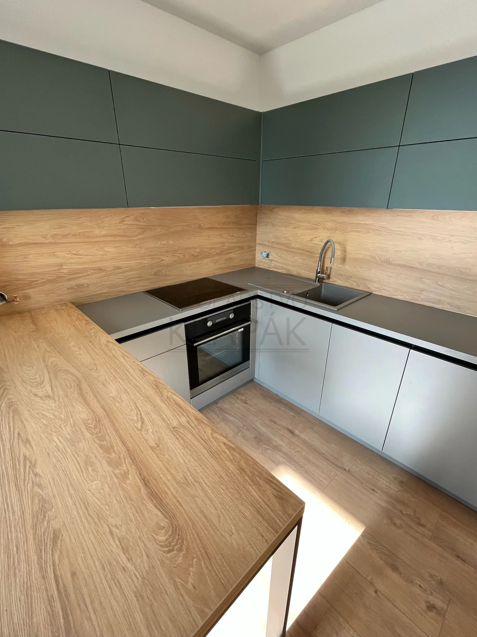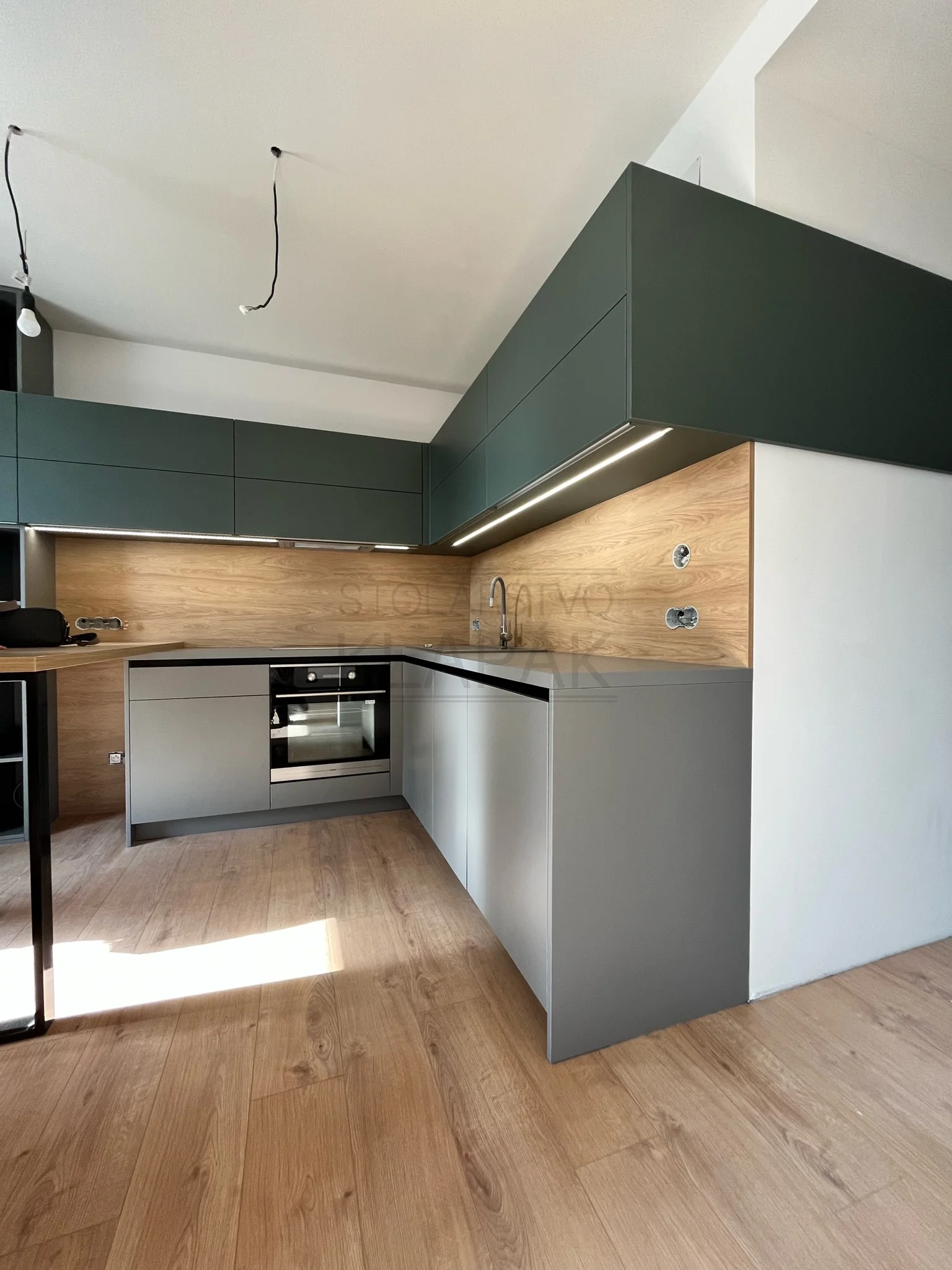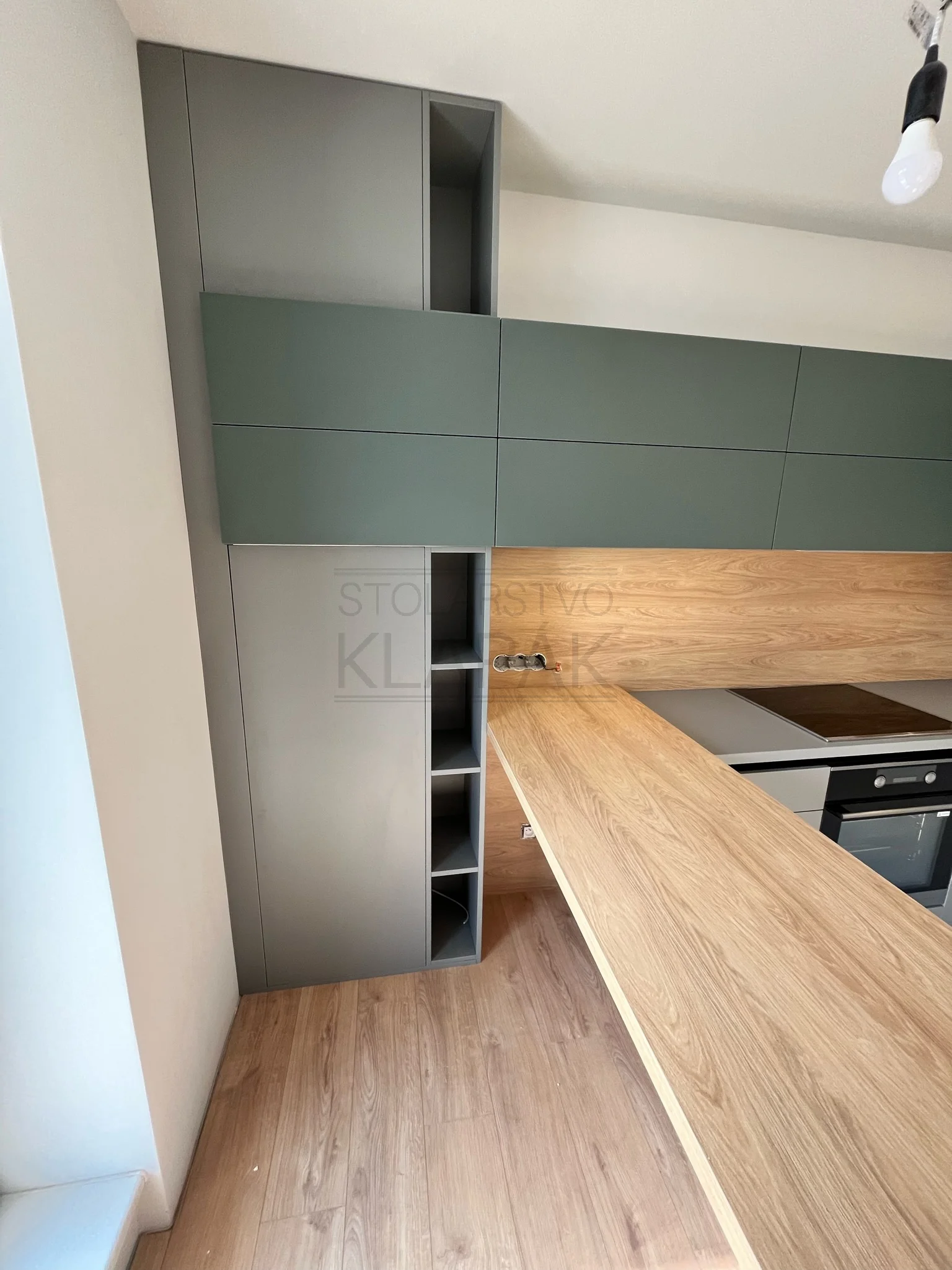 Moderná kuchynská linka so zeleným lakovaným korpusom