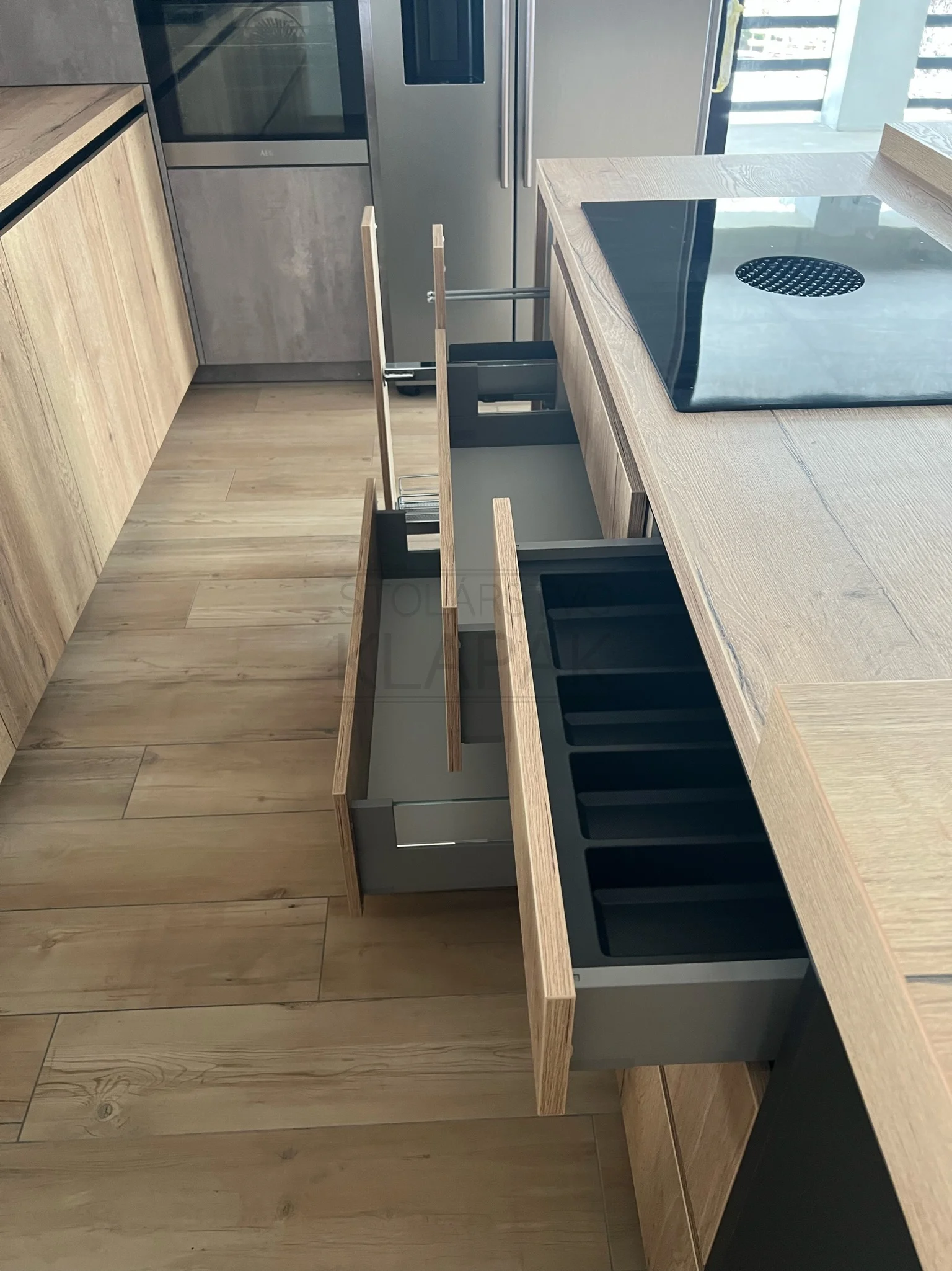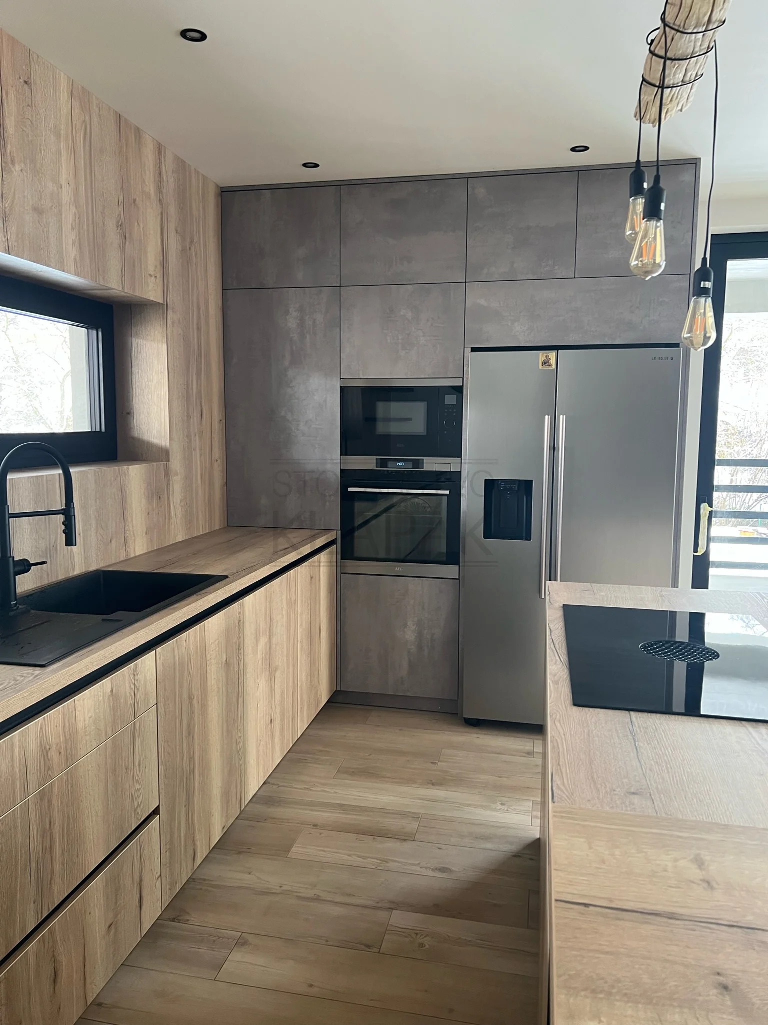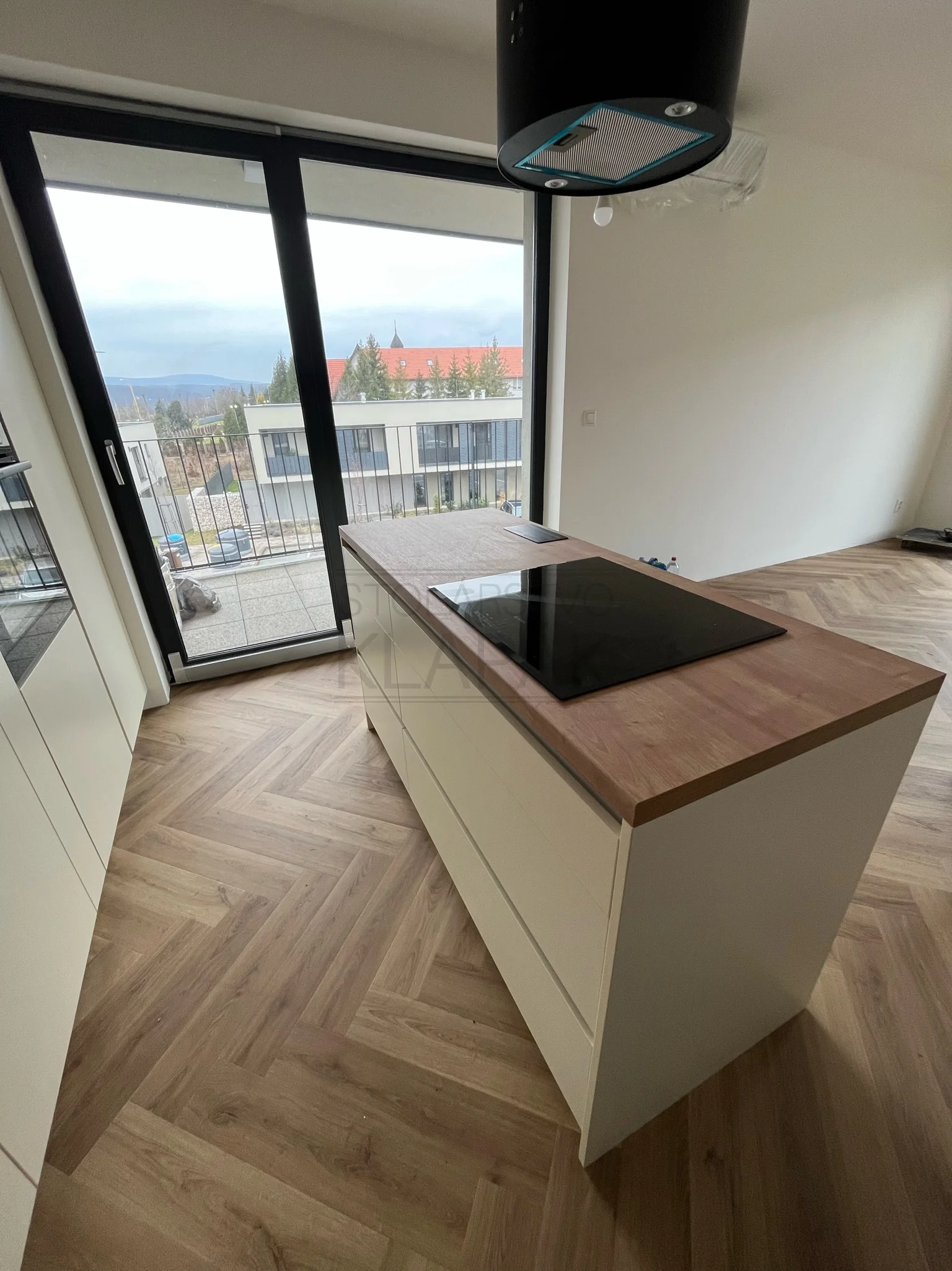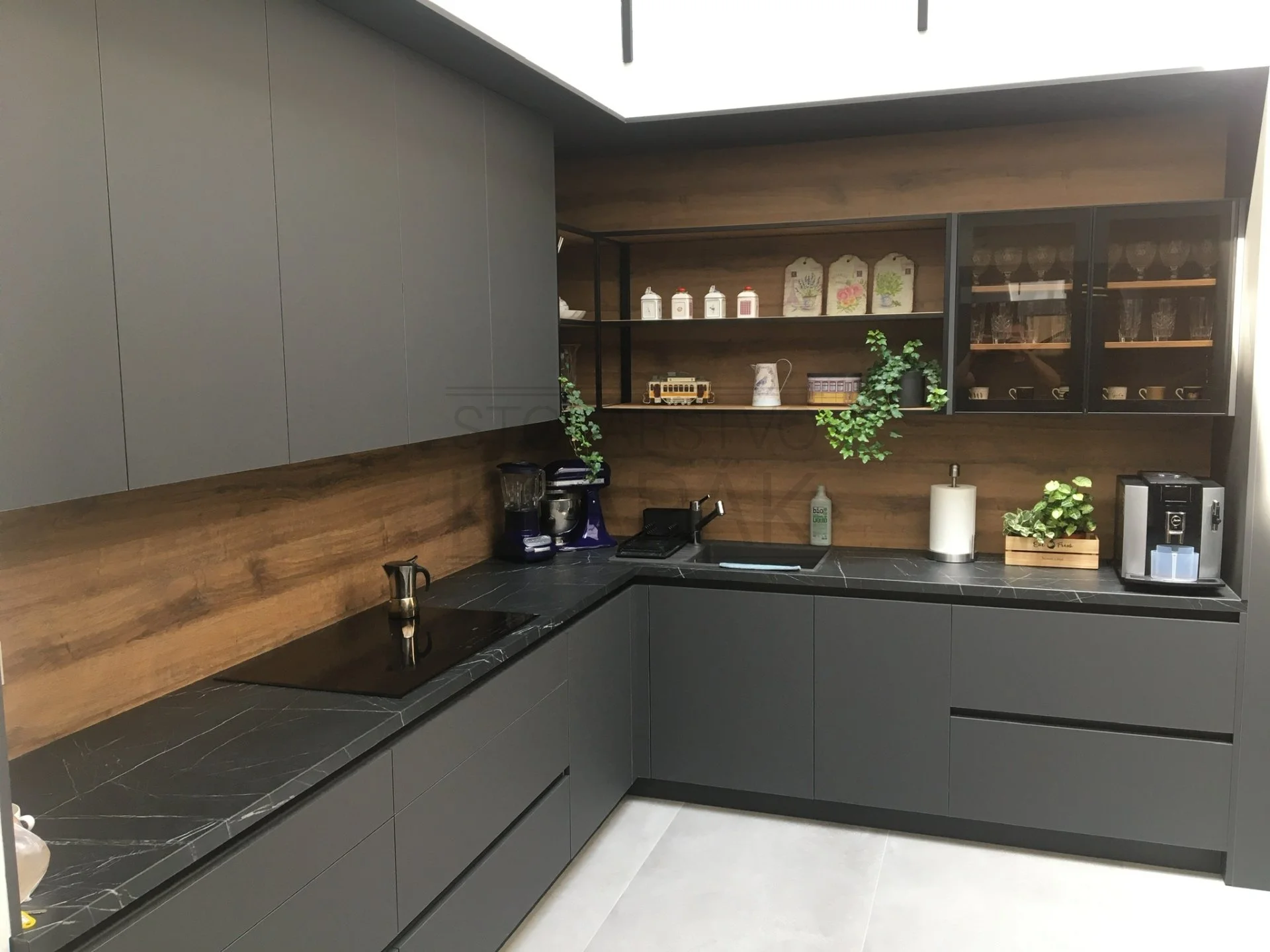 Moderná kuchynská linka so zeleným lakovaným korpusom
